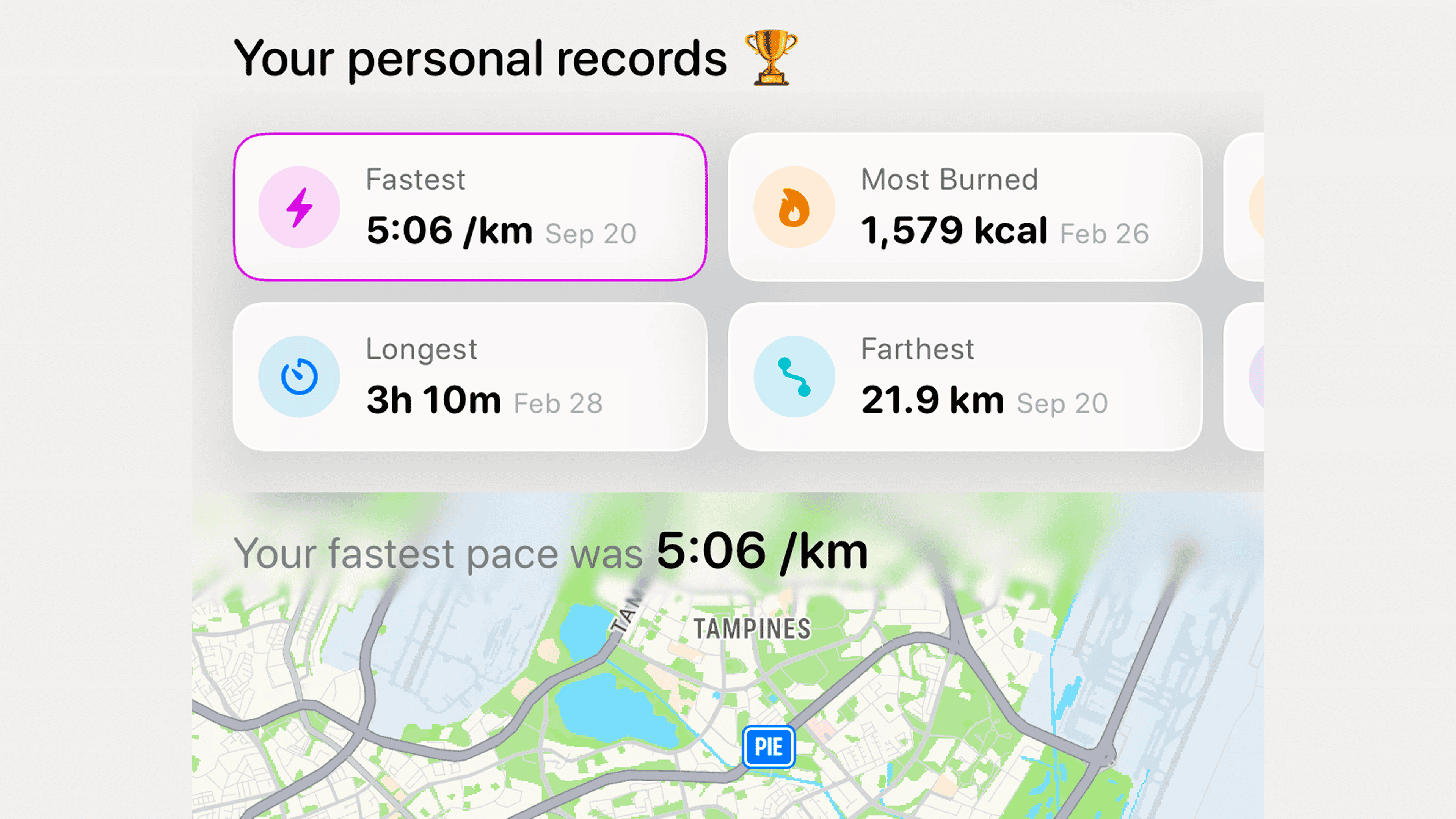- Fastest Pace — Your speed record