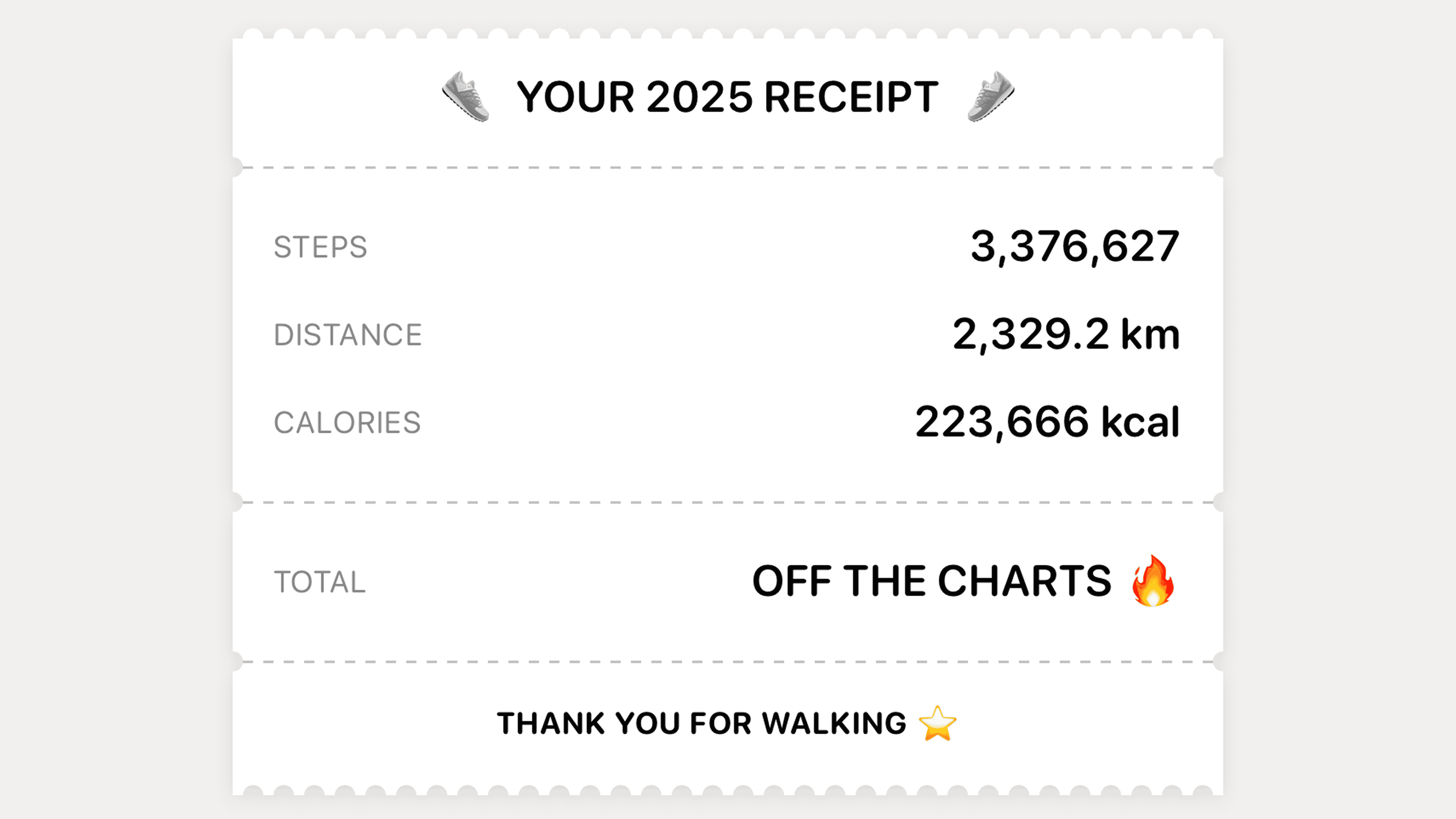 Receipt-Style Summary A creative visualization showing your stats formatted like a store receipt—with your yearly totals and a "PRICELESS" grand total.